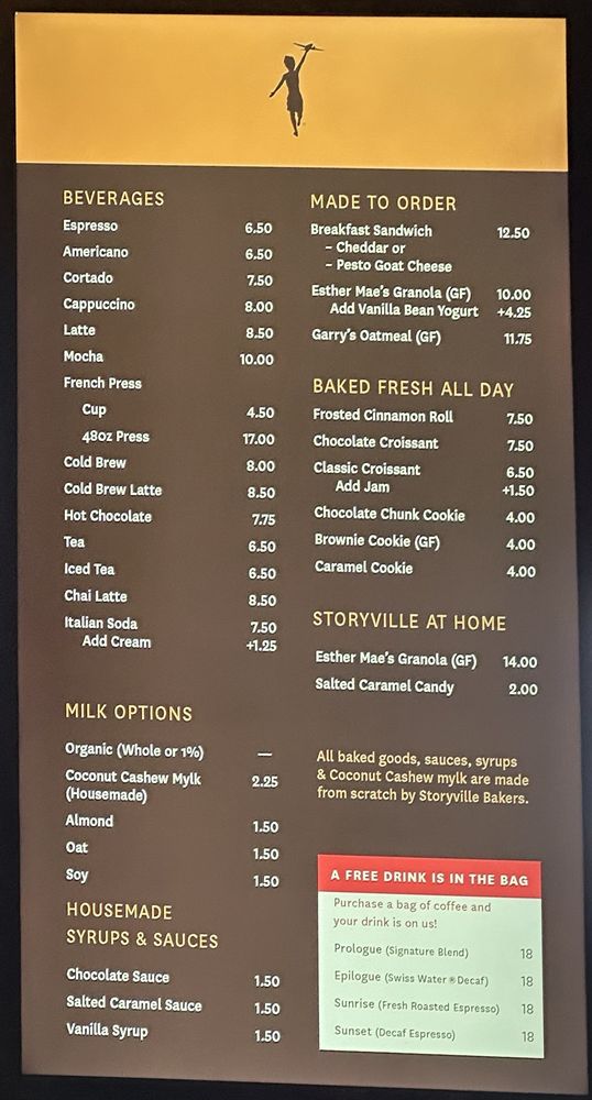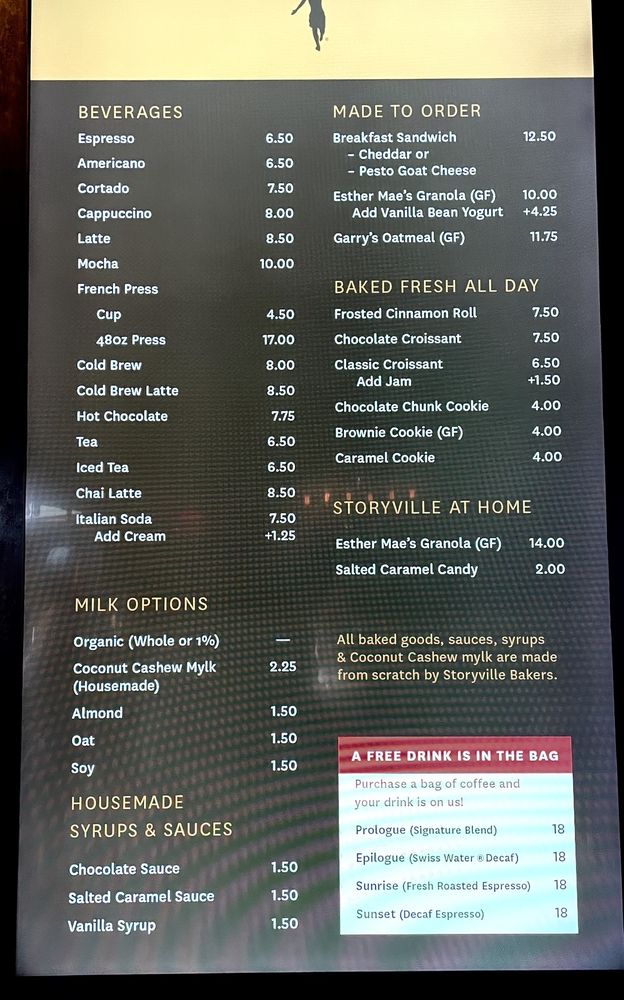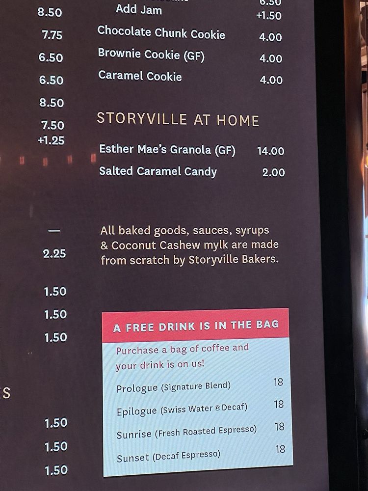 Storyville Coffee Company Menu